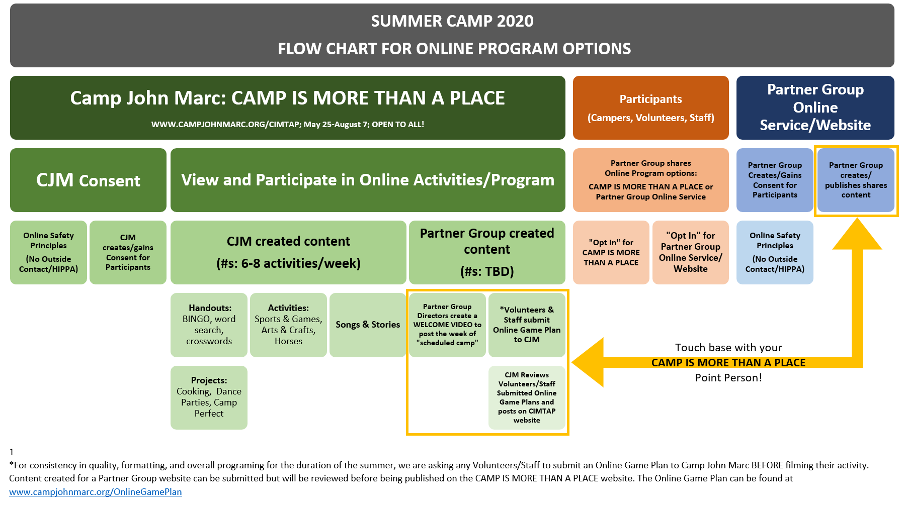 - Have questions about how the CAMP IS MORE THAN A PLACE program works? See the flow chart below! Your CJM Point Person will reach out next week to schedule your planning meeting (if it is not currently scheduled).