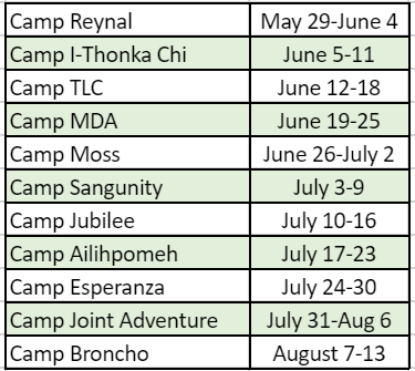 - Activities will occur May 25-August 7 on our website and open to all friends of camp!